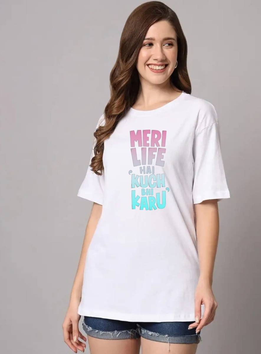 white oversized printed t-shirt