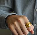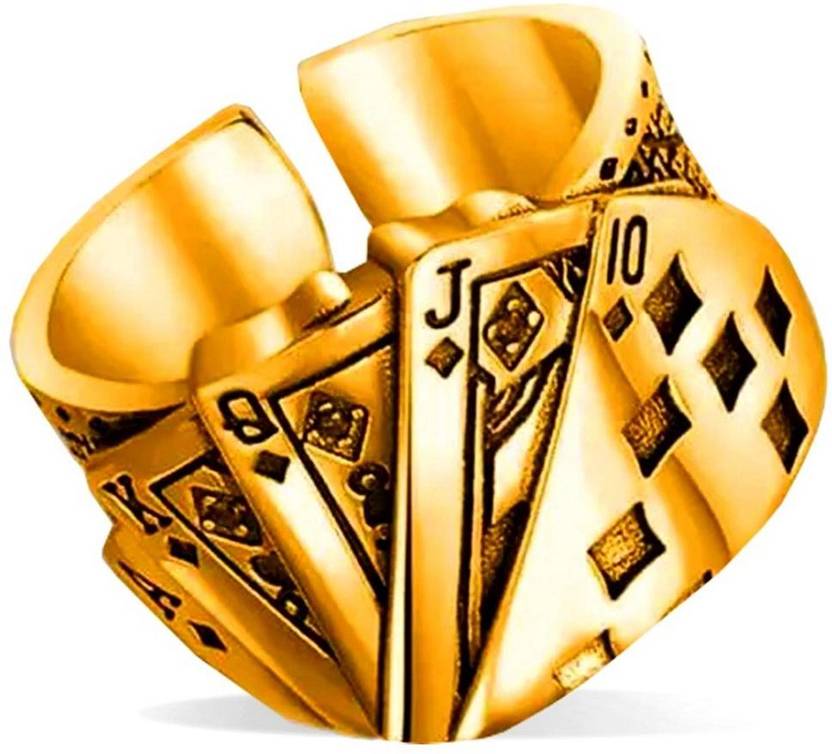 Golden Color Unisex Stainless Steel Stylish Funky Trending Adjustable Ace King Queen Jack Playing Tash/Cards Design Poker Biker Casino Thumb Finger Ring (Free Size)
