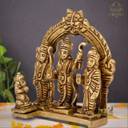 Sudarshan Arts 5" Ramdarbar Statue in Brass, Lord Rama, Lord Hanuman, Lord Lakshman, Sita Mata, Ram Ji Family statue, Ram With Hanuman, Temple Pooja Murti Rama Darbar comprises of Lord Ram, Laxman, Maa Sita and Lord Hanuman. Lord Rama is also known as Maryada Purushottamma meaning the perfect man. Lord Rama is one of the most revered incarnations of Lord Vishnu and along with Maa Sita an incarnation of Goddess Lakshmi depicts a perfect and a model couple. Along with Lord Rama and Maa Sita, Ram Darbar depicts Laxman who was a model brother and Lord Hanuman who is a model devotee. Lord Rama is kind and cares most for his devotees, thus prayers offered to Lord Rama never go in vain. Lord Rama teaches one to walk the path of dharma and righteousness. He was an ideal son, ideal husband and an ideal king and a Supreme Protector for His devotees. There are numerous Benefits for placing Ram Durbar in your religious place of the house such as- divine grace and blessings of Lord Ram, Maa Sita and Lord Hanuman. fulfilment of all wishes related to name, fame and for prosperity., good health, protection and relief from diseases, enhancing self-confidence, self-esteem, will power and mental strength. Ramdarbar a simble of love and a strong family together it’s give you positive and happiness