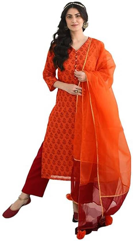 Suhail Collections Women Cotton Blend Kurta Pant Dupatta Set