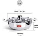 Sumeet Stainless Steel Induction Bottom (Encapsulated Bottom) Induction & Gas Stove Friendly Kadhai With Glass Lid Size No.15 (3.8 LTR) कढ़ाही 26.8 cm ढक्कन के साथ (स्टेनलेस स्टील, इंडक्शन बॉटम)