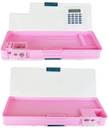 SunriseTrading Unique Design Metal Pencil Box with Calculator inside and 3D Sticker Geometry Box (Pink)