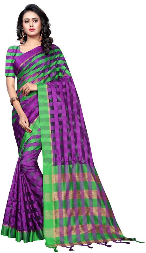 Saadhvi Purple Cotton Silk Printed Saree With Blouse
