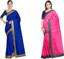 Solid/Plain Bhagalpuri Silk Blend Saree (Pack of 2, Blue, Pink)