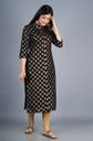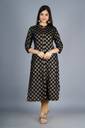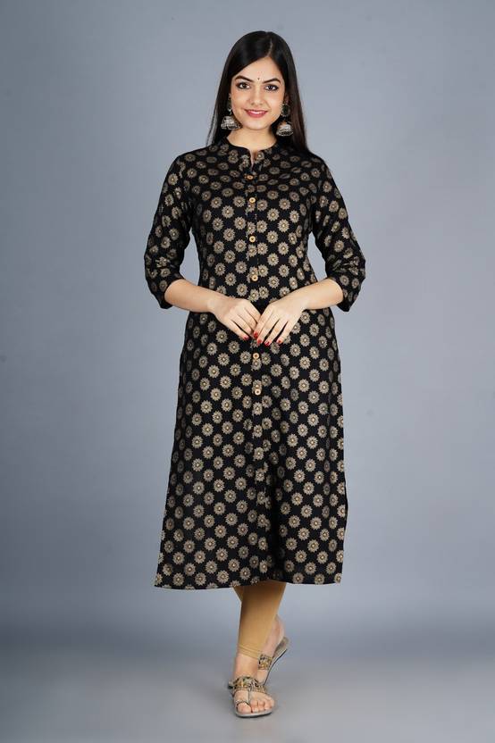 Women Printed Viscose Rayon A-line Kurta (Black)