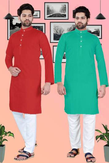 Fit Type: Regular • Our Exclusive collection of weaved Kurta for men design traditional solid pattern & multiple colors to fulfill your needs • Fabric - 100% magic cotton, breathable fabric will give you immense comforttt and feel gentle on skin throughout the day.; KNEE LENGTH - Knee Length kurta for men, Full Sleeve, Round Neck mandarin collar With Buttons • IDEAL FOR - personal use, work, occasional use, festive use and may also become a perfect gifting option for your loved ones • SUITABLE FOR – Party kurta for men, Weddings kurta for men, Regular Wear kurta for men, Celebrations kurta for men, Occasions kurta for men, Festivals kurta for men, Lohri kurta for men, Pongal kurta for men, Makar Shakranti kurta for men, Baisakhi kurta for men, Holi kurta for men, Eid kurta for men, Raksha Bandhan kurta for men, Dussehra kurta for men, Diwali kurta for men, Navratri kurta for men, Pooja kurta for men, Christmas kurta for men, Onam kurta for men, Ganeshhh Chaturthi kurta for men, Janmasthami kurta for men and Gifts kurta for men for Men's Age Range Description: Adult; Occasion Type: Casual • Design Name: Woven plain kurta ; Size Name: M, L, XL, XXL Country of Origin: India