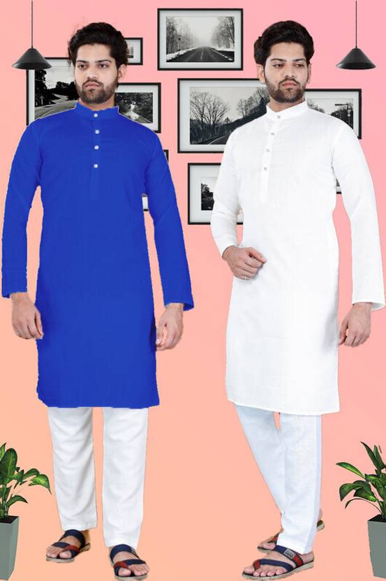 SURATILALA Pack of 2 Men Solid Cotton Blend Straight Kurta (Multicolor)