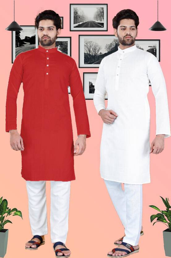 SURATILALA Pack of 2 Men Solid Cotton Blend Straight Kurta (Multicolor)