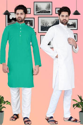 Fit Type: Regular • Our Exclusive collection of weaved Kurta for men design traditional solid pattern & multiple colors to fulfill your needs • Fabric - 100% magic cotton, breathable fabric will give you immense comforttt and feel gentle on skin throughout the day.; KNEE LENGTH - Knee Length kurta for men, Full Sleeve, Round Neck mandarin collar With Buttons • IDEAL FOR - personal use, work, occasional use, festive use and may also become a perfect gifting option for your loved ones • SUITABLE FOR – Party kurta for men, Weddings kurta for men, Regular Wear kurta for men, Celebrations kurta for men, Occasions kurta for men, Festivals kurta for men, Lohri kurta for men, Pongal kurta for men, Makar Shakranti kurta for men, Baisakhi kurta for men, Holi kurta for men, Eid kurta for men, Raksha Bandhan kurta for men, Dussehra kurta for men, Diwali kurta for men, Navratri kurta for men, Pooja kurta for men, Christmas kurta for men, Onam kurta for men, Ganeshhh Chaturthi kurta for men, Janmasthami kurta for men and Gifts kurta for men for Men's Age Range Description: Adult; Occasion Type: Casual • Design Name: Woven plain kurta ; Size Name: M, L, XL, XXL Country of Origin: India