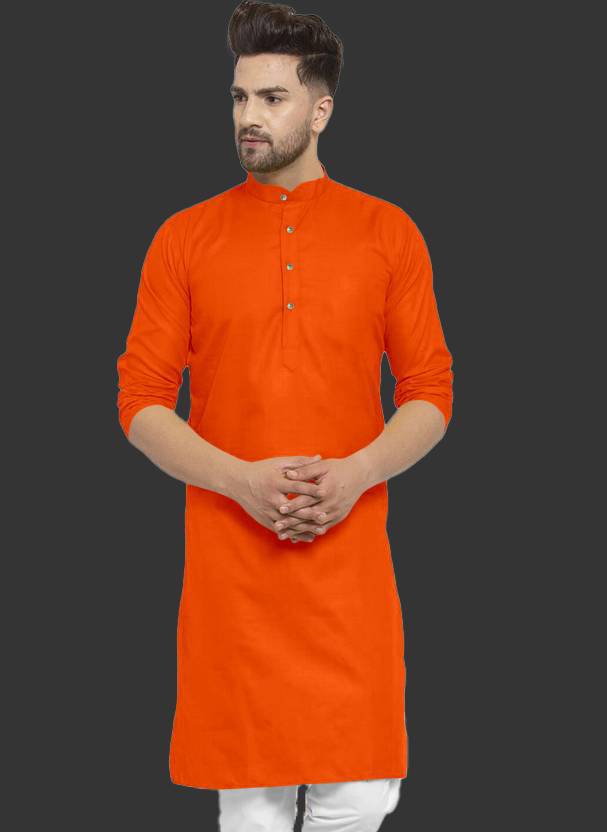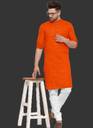 SURATILALA Men Solid Cotton Blend Straight Kurta (Orange)