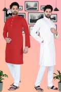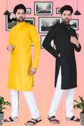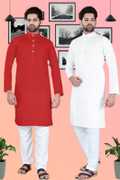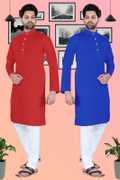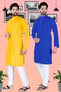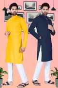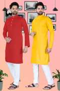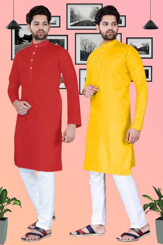 SURATILALA Pack of 2 Men Solid Cotton Blend Straight Kurta (Yellow, Red)