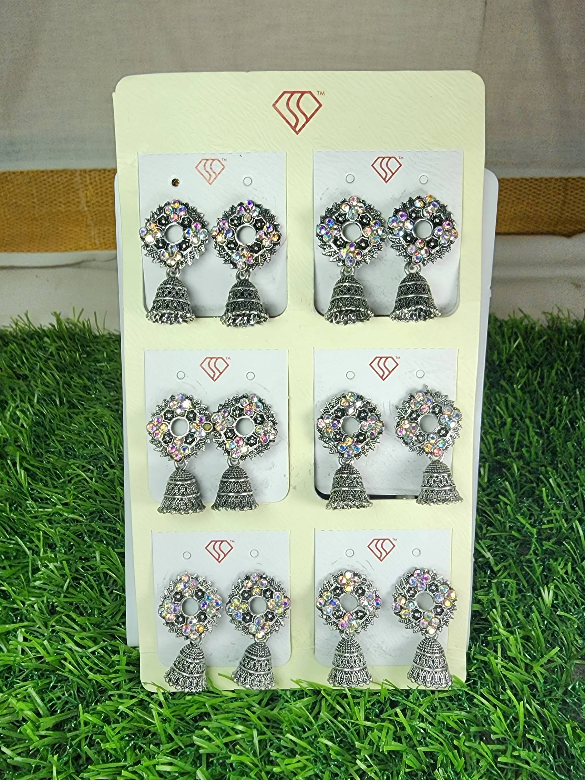 Oval Combo jhumki, Silver color Combo jhumki, Pair of 6 silver Jhumki