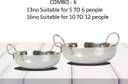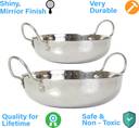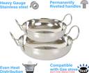 Tall Brothers Presents this Stainless steel Thick & Heavy cookware set which is perfect for making a variety of tasty and delicious meals every day or on those special occasions, festivals or on family gatherings. This kadhai range will serves any kind of family size small or large. Range -10no to 16no - size 10 (1,200ml), size 11 (1,800 ml) for , size 12 (2,300 ml), size 13 (3,000 ml), size 14 (3,800ml) and size 16 (5,900ml). 10no Suitable for 1 to 2 people, 11no for 2 to 3 people, 12no for 4 people, 13no for 5 to 6 people, 14no for 7 to 8 people, 16no for 10 to 12 people. ATTRACTIVE APPEARANCE - Shiny, Mirror- Finished. It comes with a attractive hammered design which gives authentic traditional look and appeal to your kitchenware collections. GOOD COOKING ABILITY - Stainless steel has excellent cooking performance – quick heat absorbtion and evenly heat distribution. SAFE AND NON-TOXIC – Stainless steel surface preserves the taste and nutritional qualities of food. this is one of the safe products for food. It allows cooking food without the leaching any harmful chemicals or a wired taste like some other bare metals. VERY DURABLE – stainless steel comes close to indestructible. Forget about the annoying problems of chip coat like nonstick, stain like cast- iron cookware. Good constuction stainless steel will last for long or even can be passed to next generation. Permanently riveted handles are used instead of any screw. It gives extra strength to the handles and handles does not loosen up. Handle is designed and placed in such a way that it will not get much warm while cooking for longer duration. Hence taking care of all your kitchen needs, Tall Brothers Stainless Steel Cookware are carefully designed and fabricated with compliance with industry standards. This cookware is manufactured under Strict control. It is strong, durable and convenient to clean and wash.