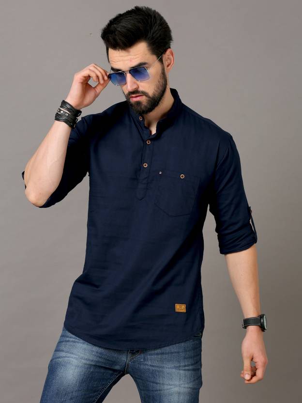 टॉलवॉकर पुरुषों के लिए सॉलिड स्ट्रेट कुर्ता (गहरा नीला)