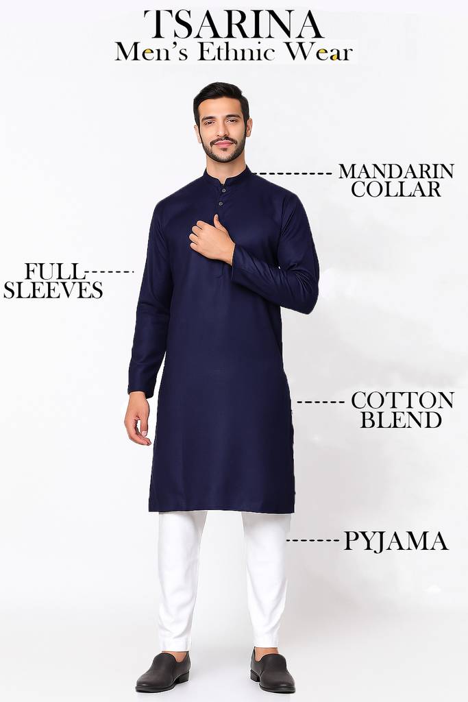 टॉलवॉकर पुरुषों के लिए सॉलिड स्ट्रेट कुर्ता (गहरा नीला)
