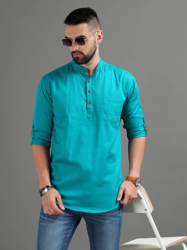 टॉलवॉकर पुरुषों के लिए सॉलिड स्ट्रेट कुर्ता (नीला)