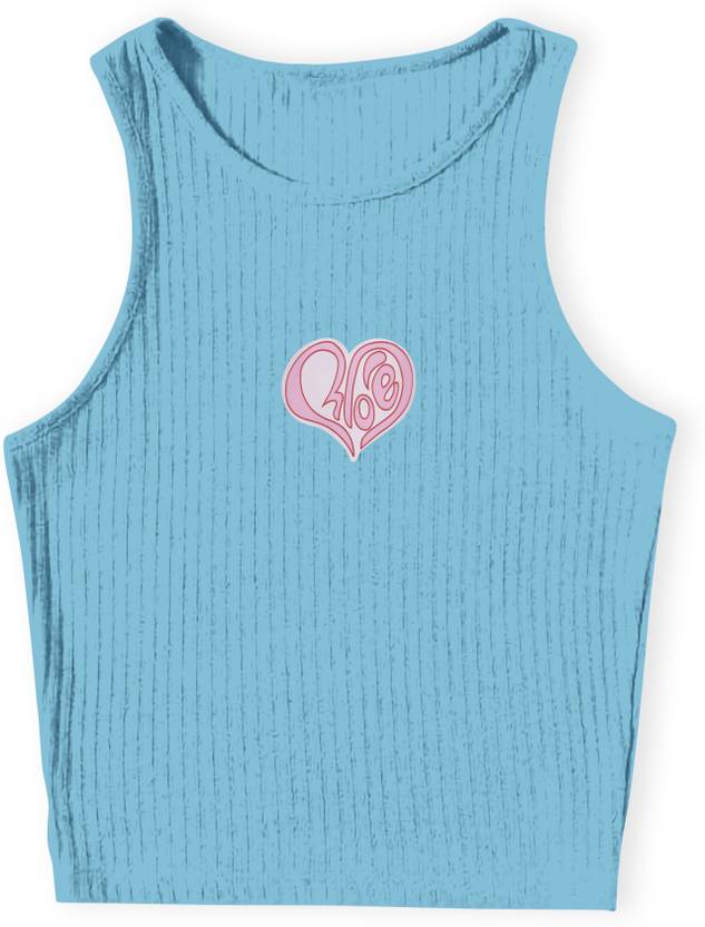 TeeWink Stylish Heart Love Design Printed Round Neck Women Rib Top