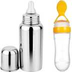 TheMomsCare Steel Bottle for Milk Feeding & Pink Spoon Bottle for Food Feeder 304 Grade - Silicon, Steel (Yellow, Silver)