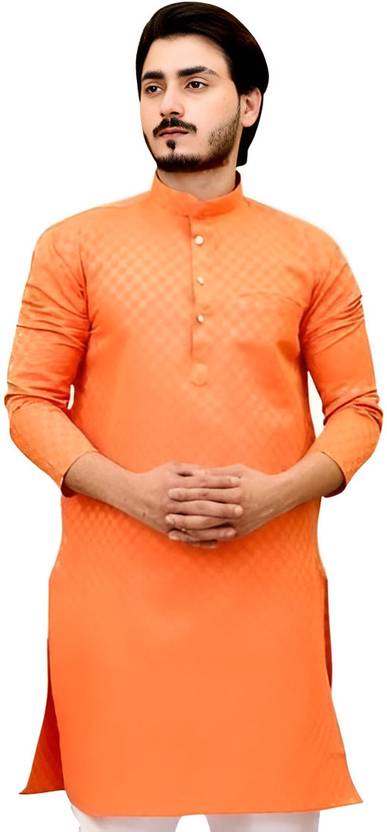 BROVIAFASHION Men Self Design Khadi Cotton Straight Kurta (Orange)