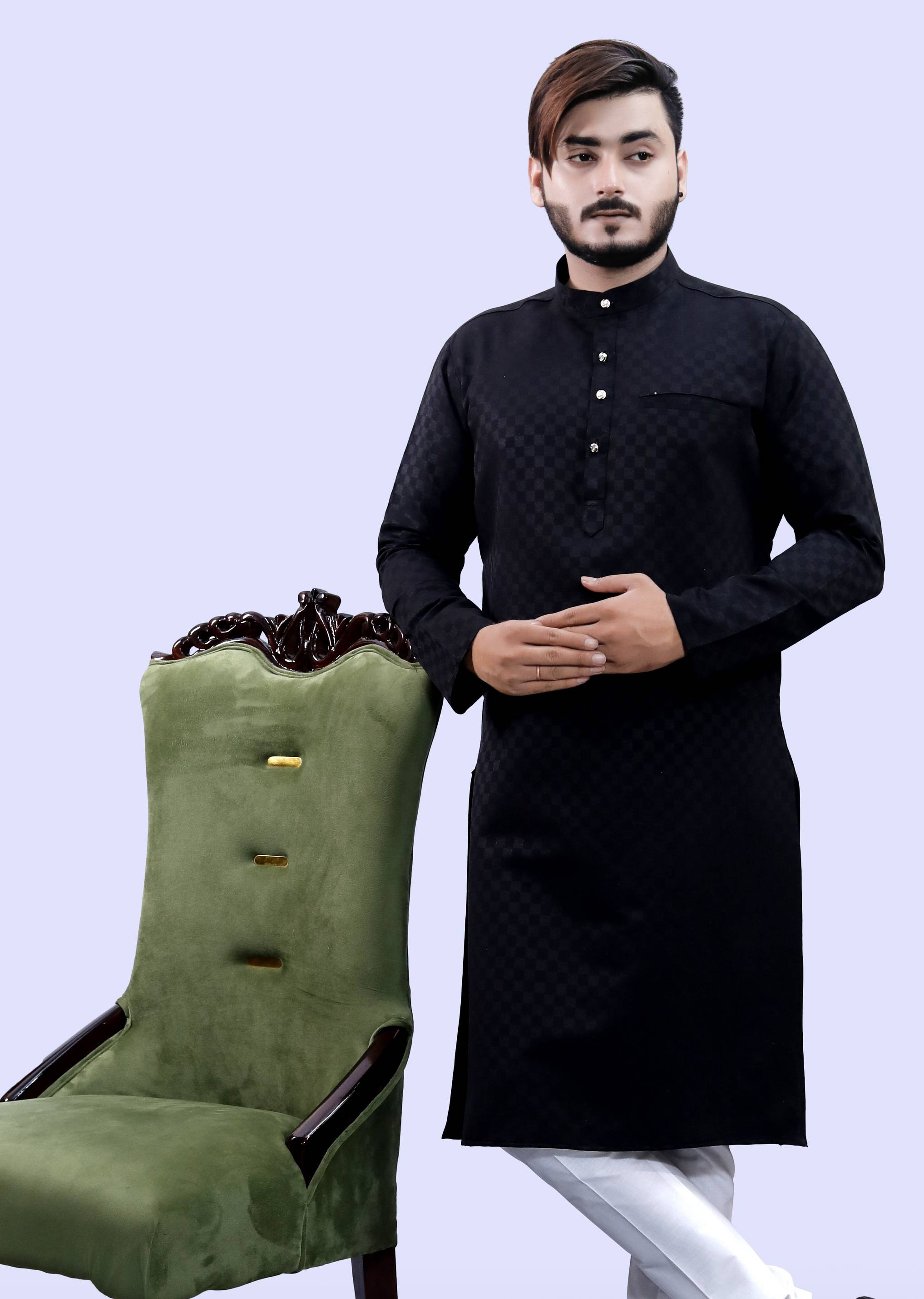 टाइब्रा कलेक्शन पुरुषों के लिए सॉलिड स्ट्रेट कुर्ता (काला)