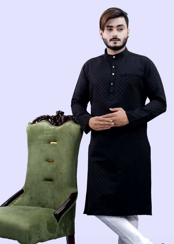 टाइब्रा कलेक्शन पुरुषों के लिए सॉलिड स्ट्रेट कुर्ता (काला)