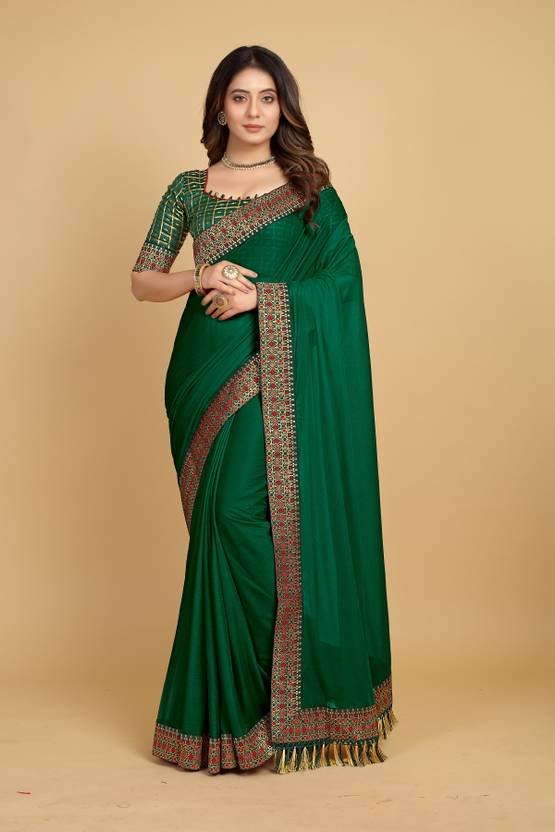 Self Design Bollywood Silk Blend Saree (Dark Green)