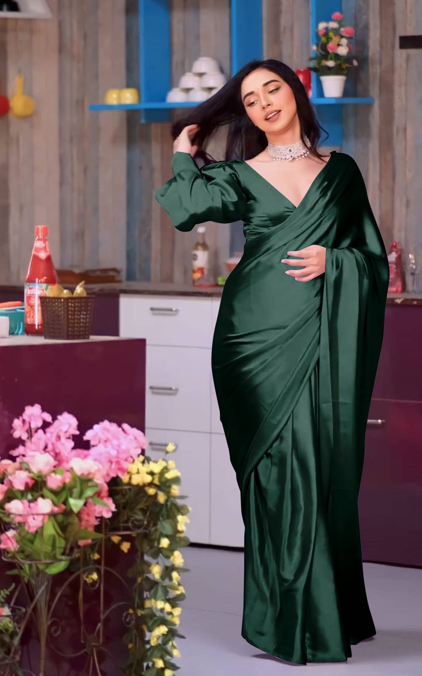 साटन सिल्क साड़ी (5.50 mtr) विथ ब्लाउज़ पीस (1.00 mtr)