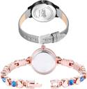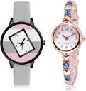 Dial Colour : Multicolor And White ; Band Colour : Grey And Rose Gold ; Case Shape : Round ; Band Material : Genuine Leather And Stainless Steel ; Case Diameter : 36 And 21 mm ; TIMETRANSELEVATE New Traditional casual genuine leather And stone Grey And Rose Gold Colour Analog-Digital Genuine Leather And Stainless Steel Belt 2 Watch Combo For Women And Girls - GM547-G457