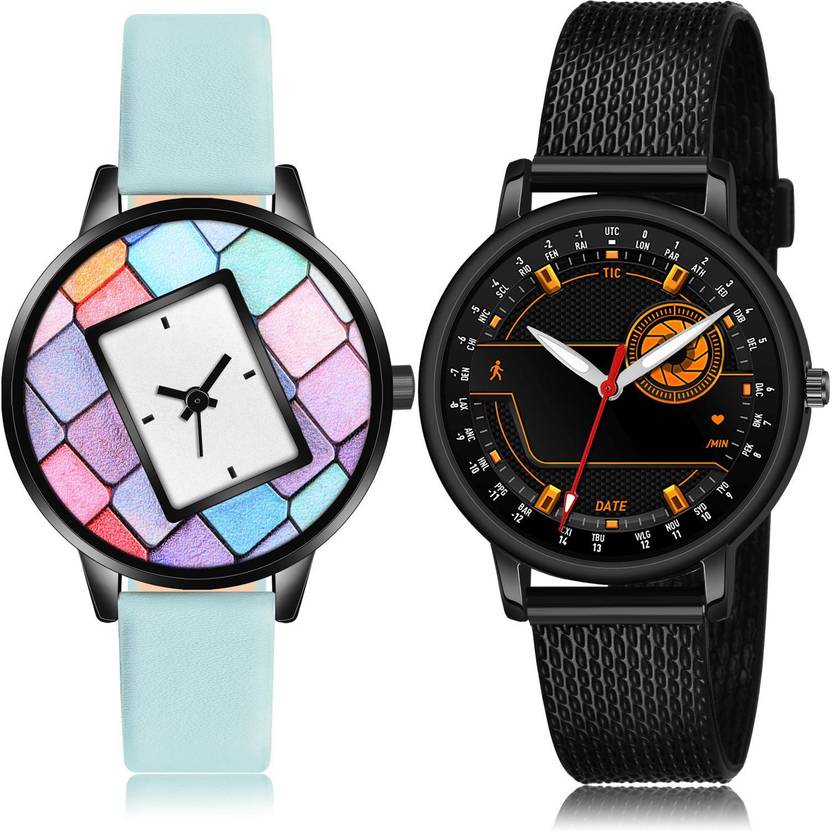 Dial Colour : Multicolor And Black ; Band Colour : Blue And Black ; Case Shape : Round ; Band Material : Genuine Leather And Plastic ; Case Diameter : 36 And 32 mm ; TIMETRANSELEVATE Best Branded casual genuine leather And 0 Blue And Black Colour Analog-Digital Genuine Leather And Plastic Belt 2 Watch Combo For Women And Girls - GM548-(52-L-10)