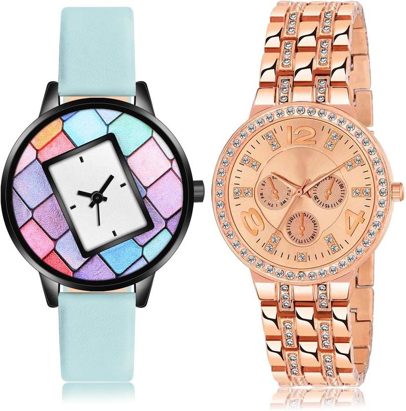 Dial Colour : Multicolor And Rose Gold ; Band Colour : Blue And Rose Gold ; Case Shape : Round ; Band Material : Genuine Leather And Metal ; Case Diameter : 36 And 40 mm ; TIMETRANSELEVATE Best Heart casual genuine leather And chronograph chain Blue And Rose Gold Colour Analog-Digital Genuine Leather And Metal Belt 2 Watch Combo For Women And Girls - GM548-G628