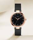 34 mm women’s fashion case with stylish black mesh band bracelet and a black dial