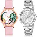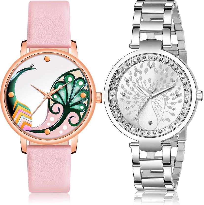 Dial Colour : Pink And Silver ; Band Colour : Pink And Silver ; Case Shape : Round ; Band Material : Genuine Leather And Stainless Steel ; Case Diameter : 36 And 35 mm ; TIMOXIDE Best Royal peacock genuine leather And chain Pink And Silver Colour Analog-Digital Genuine Leather And Stainless Steel Belt 2 Watch Combo For Women And Girls - GM602-GM207
