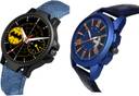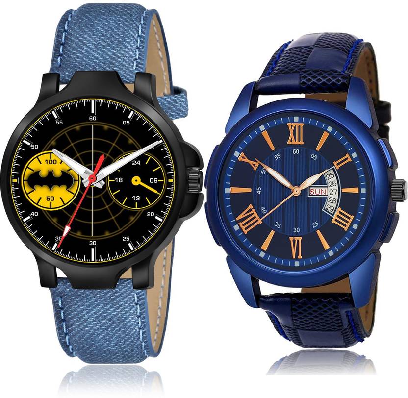 Dial Colour : Black And Blue ; Band Colour : Blue ; Case Shape : Round ; Band Material : Genuine Leather ; Case Diameter : 44 mm ; TIMOXIDE Modish Unique casual and day and date Blue Colour Analog Genuine Leather Belt 2 Watch Combo For Boys And Men - S542-BRM1
