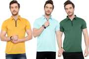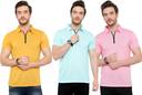 Pack of 3 Men Solid Polo Neck Cotton Blend Multicolor T-Shirt