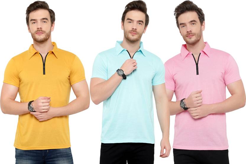Adorbs Solid Men Polo Neck Multicolor T-Shirt