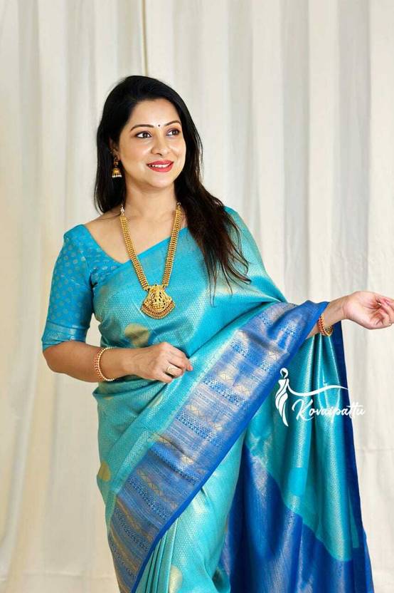 Woven Kanjivaram Jacquard Saree (Blue)