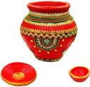 This festive season we bring wide range of traditional, contemporary, modern diyas & candles. These designer handicraft Karwa with dhakan and diya will enhance the liveliness of any occasion. Terracotta/Clay Kawa Chauth Matka with lid and Diya in Red Golden Colour. Handcrafted Karva chauth lota with dhakan and diya.