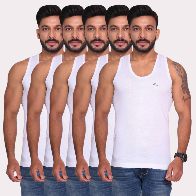 Plain, Simple, Comfortable White Sleeveless Vest. The Always go to option that you can rely on for daily usage. It's made of 100% pure combed cotton, for utmost comfort. Fabric bleached with specialised chemicals that minimise body-itch and odour.