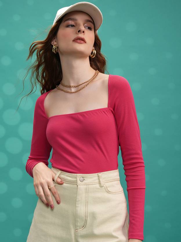 टोक्यो टॉकीज महिलाओं के लिए कैजुअल सॉलिड गुलाबी टॉप
