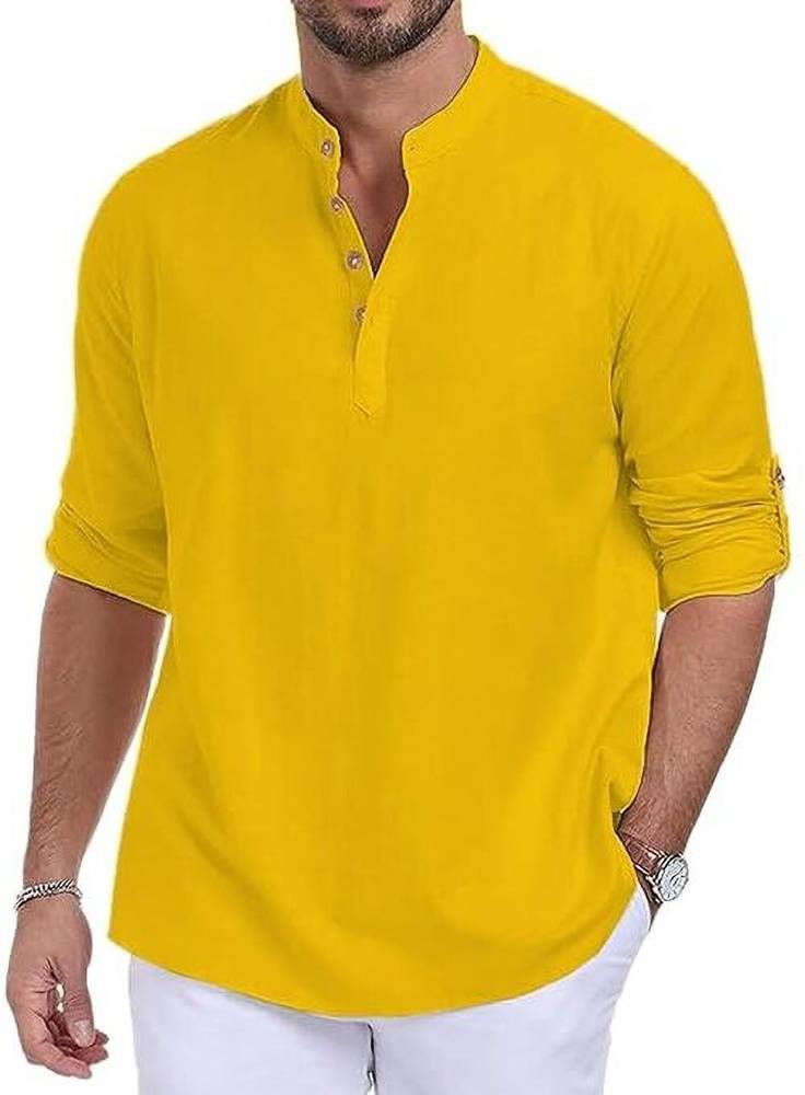 Men Solid Cotton Blend Straight Kurta (Yellow)