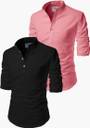TrendiVastra Men Solid Straight Kurta (Black, Pink)