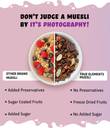 Each serving of True Elements Dark Chocolate Muesli is packed with essential nutrients, including fiber, protein, vitamins, and minerals, to support overall health and well-being. With its high antioxidant content from seeds and cranberries, this muesli promotes skin and hair health, while the dark chocolate provides a rich and indulgent taste without added sugar.