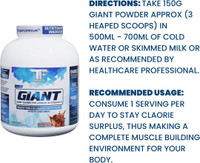 Featuring clear guidelines, this protein powder is simple to incorporate into your routine. You can mix up to three heaped scoops of the powder with 500 to up to 700 ml of cold water or skimmed milk, or follow the advice of a healthcare professional. For optimal results, you can consume one serving per day to maintain a calorie surplus, supporting an optimal environment for muscle growth. This flexible supplement can be taken pre-workout, post-workout, or between meals to help meet your daily calorie goals.