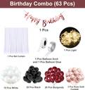 Package Include Happy Birthday Decorations Combo Set of 63 Pcs, Happy Birthday Rose Gold Bunting Banner 1 Pcs, 55 Pcs Burgundy Black and White Metallic Balloon, 3 Pcs Rose Gold Confetti Balloon, 1 Pcs White Net Curtain, 1 Pcs Balloon Arch and 1 Pcs Glue Dot, for Happy Birthday Decoration Burgundy Black and White Birthday Decorations Combo Set (Pack of 63).