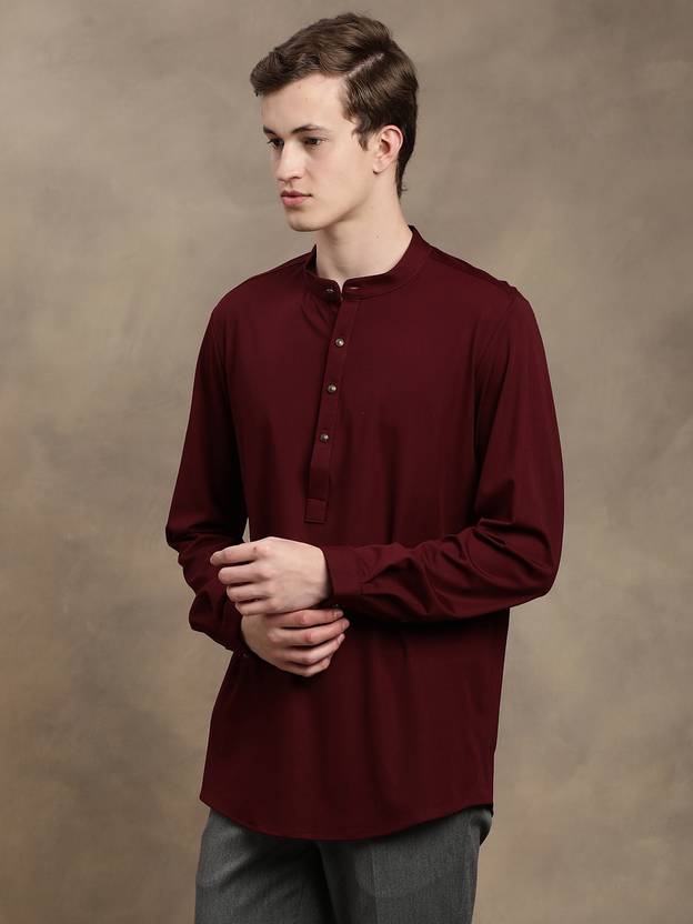 पुरुषों के लिए सॉलिड स्ट्रेट कुर्ता (मैरून)