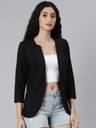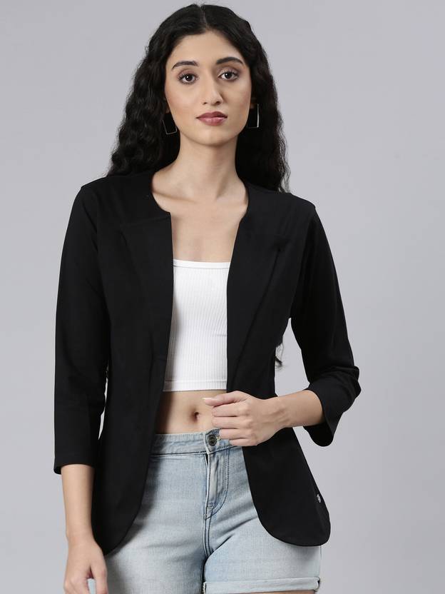 TWIN BIRDS Women Asymmetric Full Sleeve Black Shrug