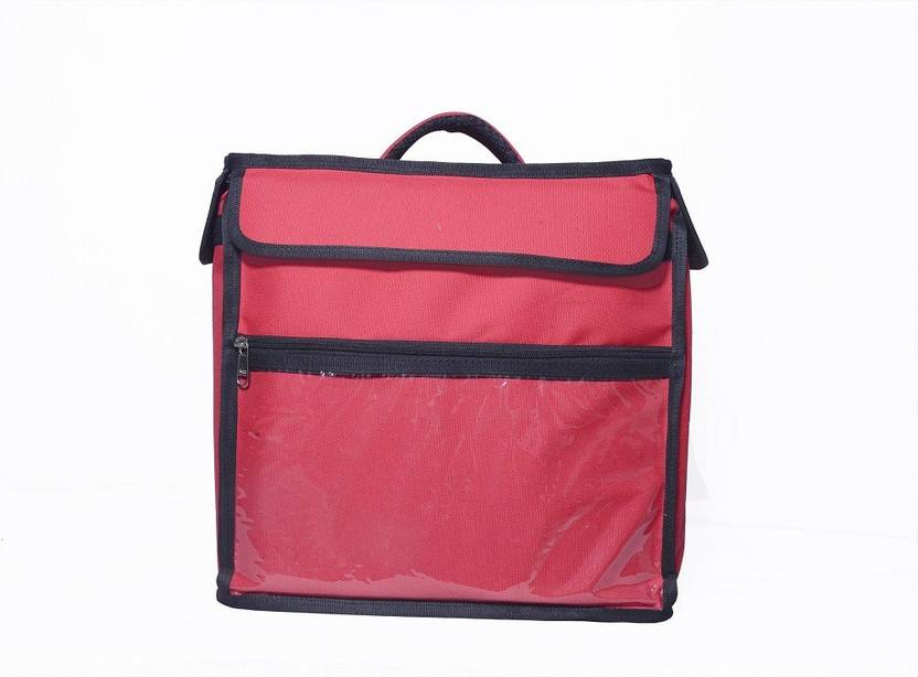 Ultrafine present cooler bags for Food, Pizza, milk, Juices Delivery , colored black and made of nylon material that makes it comfortable to carry your lunch easily. Can hold upto five meals in various packing such as containers/trays/boxes Adjustable flap partition for segregation of food packets Four beverages compartments Fibre reinforced finish for holding food packages Completely sealed high quality velcro for maximum closure Specially designed for easy loading and unloading Sturdy shoulder strap with cushioning for easy carriage Sturdy waist strap for easy carriage on bike Transparent sleeve on front for placing company branding Rain cover for rain protection