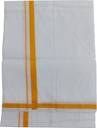 This white dhoti with a color border and unstitched is a square fabric. This cloth is made of polyester fabric. It is especially used in South India.