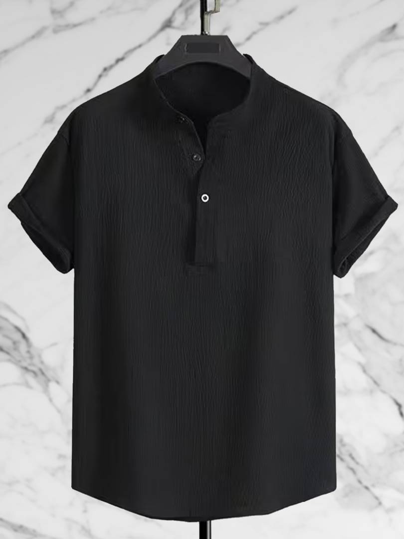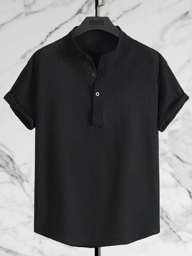 Mens Solid Mandarin Neck Short Sleeve Polyester Regular Fit Shirt Style Kurta