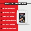 Boasting an array of impressive features, this tyre polish ensures optimal performance. Once applied, this tyre polish forms a water-resistant barrier, ensuring your tyres stay clean even during rainy weather. Also, it prevents water from seeping into the tyre's surface, thereby maintaining the shine and longevity of the polish. Additionally, its anti-stick and dust-repelling protection keeps your tyres clean for a prolonged period of time. Moreover, the anti-stick properties of this tyre polish prevent dirt and grime from adhering to the surface, making it easy to clean and maintain. And, this tyre polish creates a thin yet durable layer that adds a glossy finish to your tyres. The high shine enhances the overall aesthetics, giving your vehicle an impressive and eye-catching look. Moreover, featuring a quick dry formula, this tyre polish allows for convenient application.